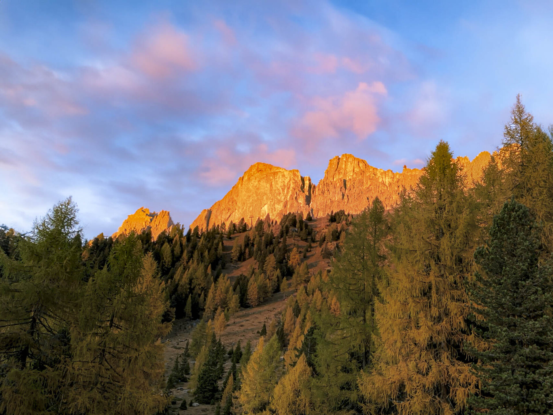 The Costalunga Pass lies on the slopes of the Latemar and at the foot of the Catinaccio natural amphitheatre, surmounted by the Roda di Vael. This pass, which marks the boundary between Trentino and South Tyrol (Alto Adige), is the starting point for many hikes and circular trails thanks to the ski lifts giving easy access to the ultra-modern ski area in winter. It is also known as the Carezza Pass thanks to the nearby Lake Carezza whose turquoise waters reflect the Latemar peaks.