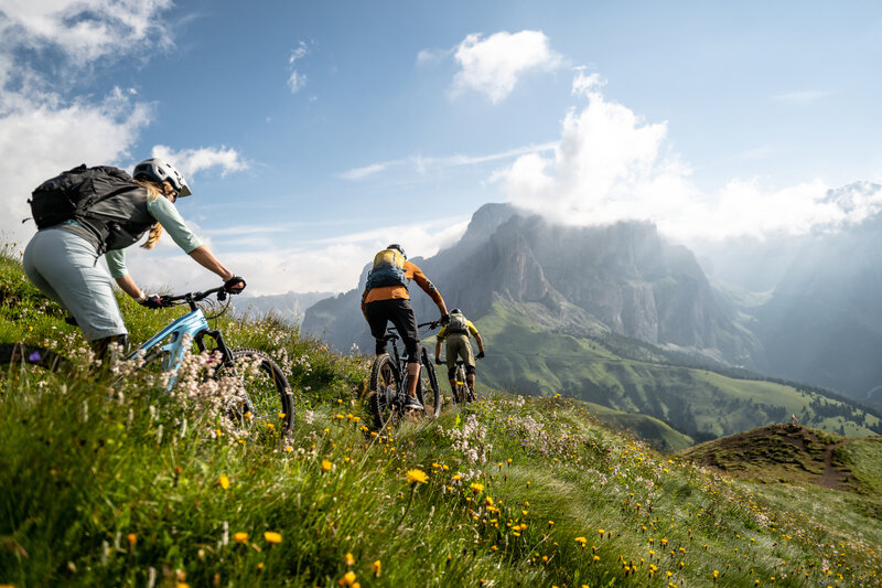 In winter, you ski around it. In summer, you conquer it on two wheels. The Sellaronda MTB Tour is a bucket-list ride for trail lovers. And what a trail it is. An epic loop best tackled with a mountain bike guide, this tour winds around a Dolomite fortress spanning three provinces, two regions, and four Ladin valleys. With a single pass, lifts take you effortlessly to high altitudes. Ahead of you, landscapes carved from stone shift in colour and form with every turn. Here, every climb is a challenge. Every descent, pure freedom. Every pause, a moment of beauty.