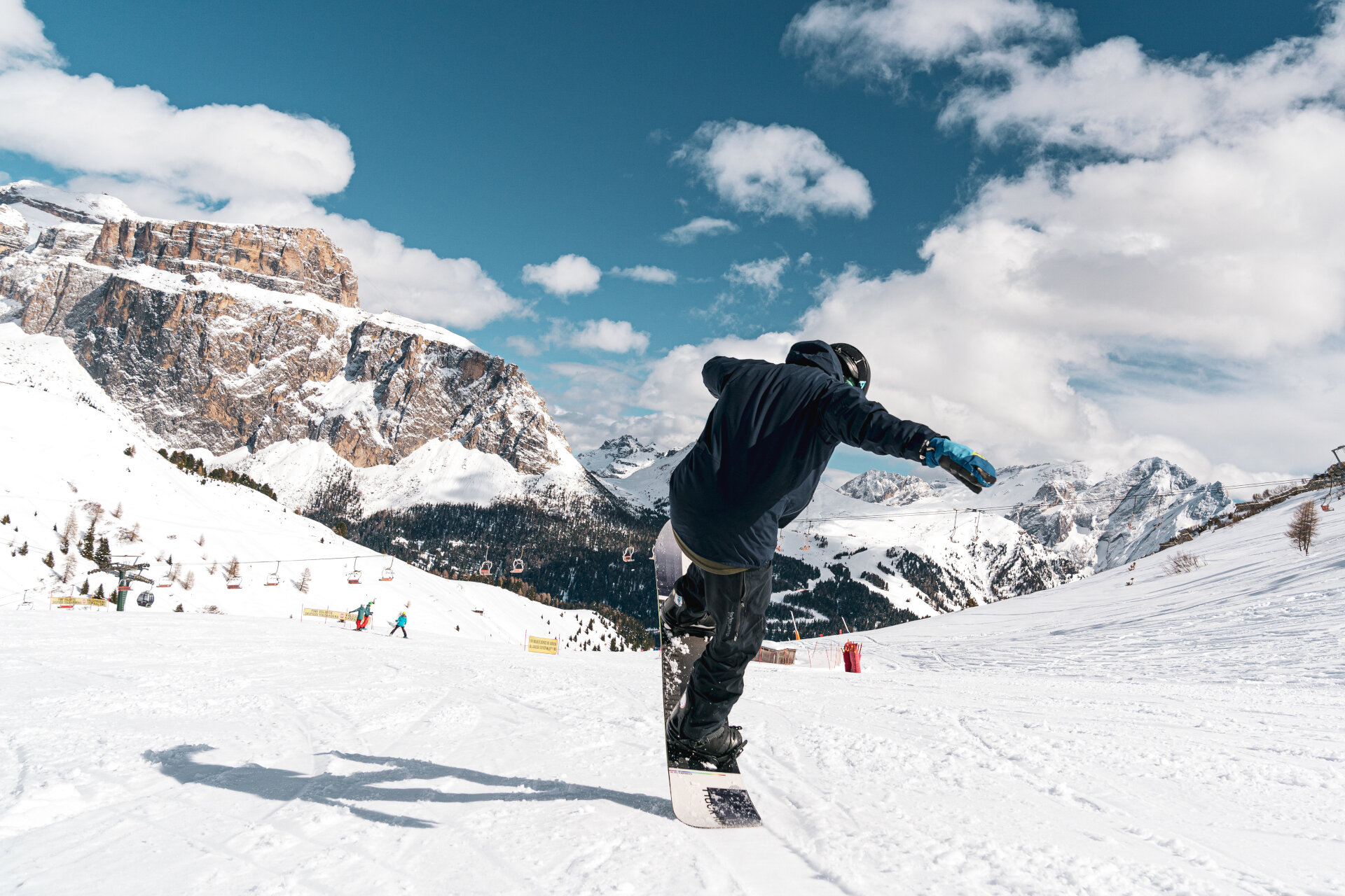 Fun, fantasy and ability of the riders are ensured in the Col Rodella ski area. The tried-and-tested timed track, with top views towards Sassolungo, Sella and Pordoi, is flanked by the attraction designed and realized by QParks®, Austrian leading factory in the snow park sector.